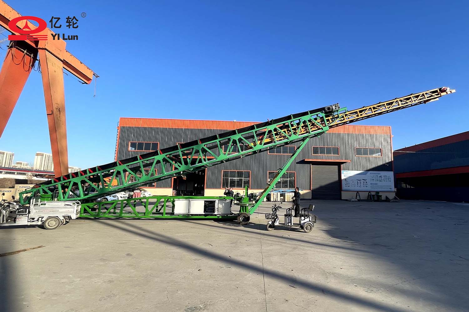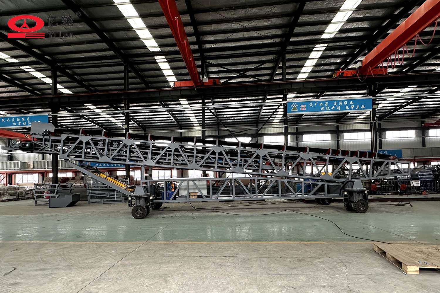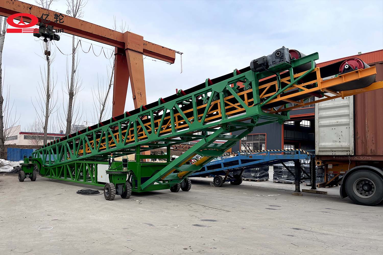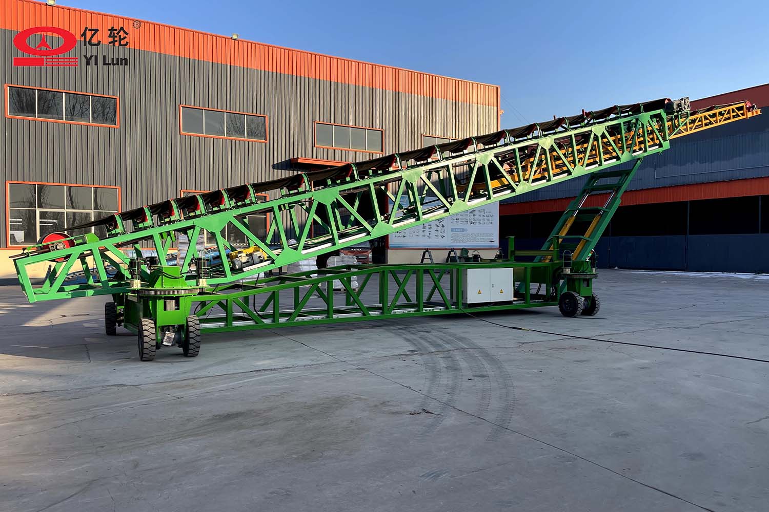 大型智能四驅(qū)輪胎式輸送機(jī),采用伸縮輸送臂和液壓升降架,能夠便捷的調(diào)節(jié)堆料的半徑和高度,場(chǎng)地內(nèi)任意方向行走,料場(chǎng)能最大限度的堆滿,具備強(qiáng)大的物料倉(cāng)儲(chǔ)管理的能力。